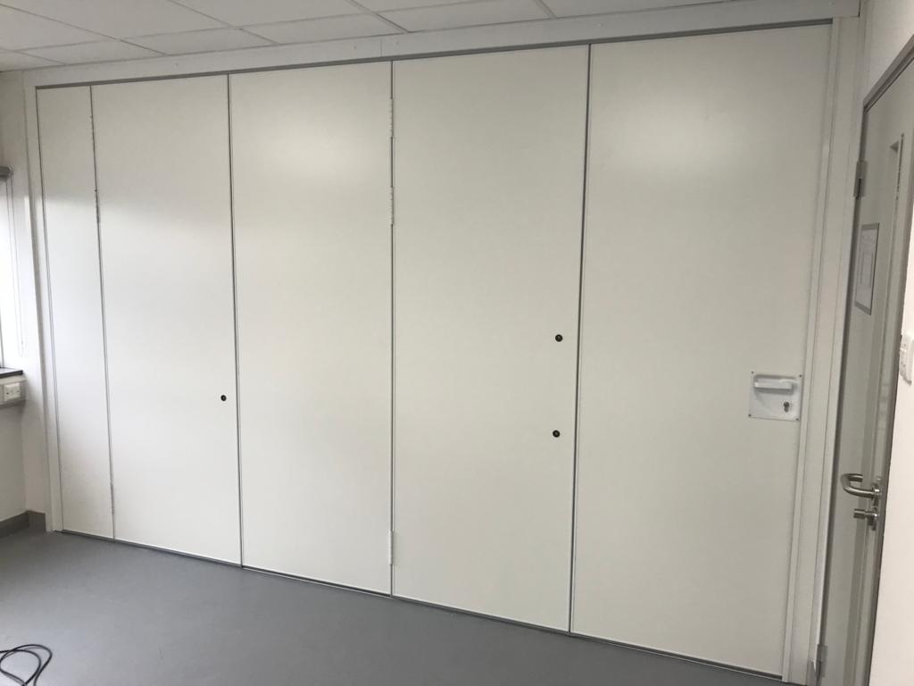 Our M85 sliding folding system is a sliding folding wall that incorporates a series of flat panels that are hinged together to give a flush appearance when closed.
